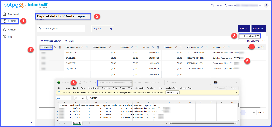 - Export Option – Select to download the report data in a .csv format